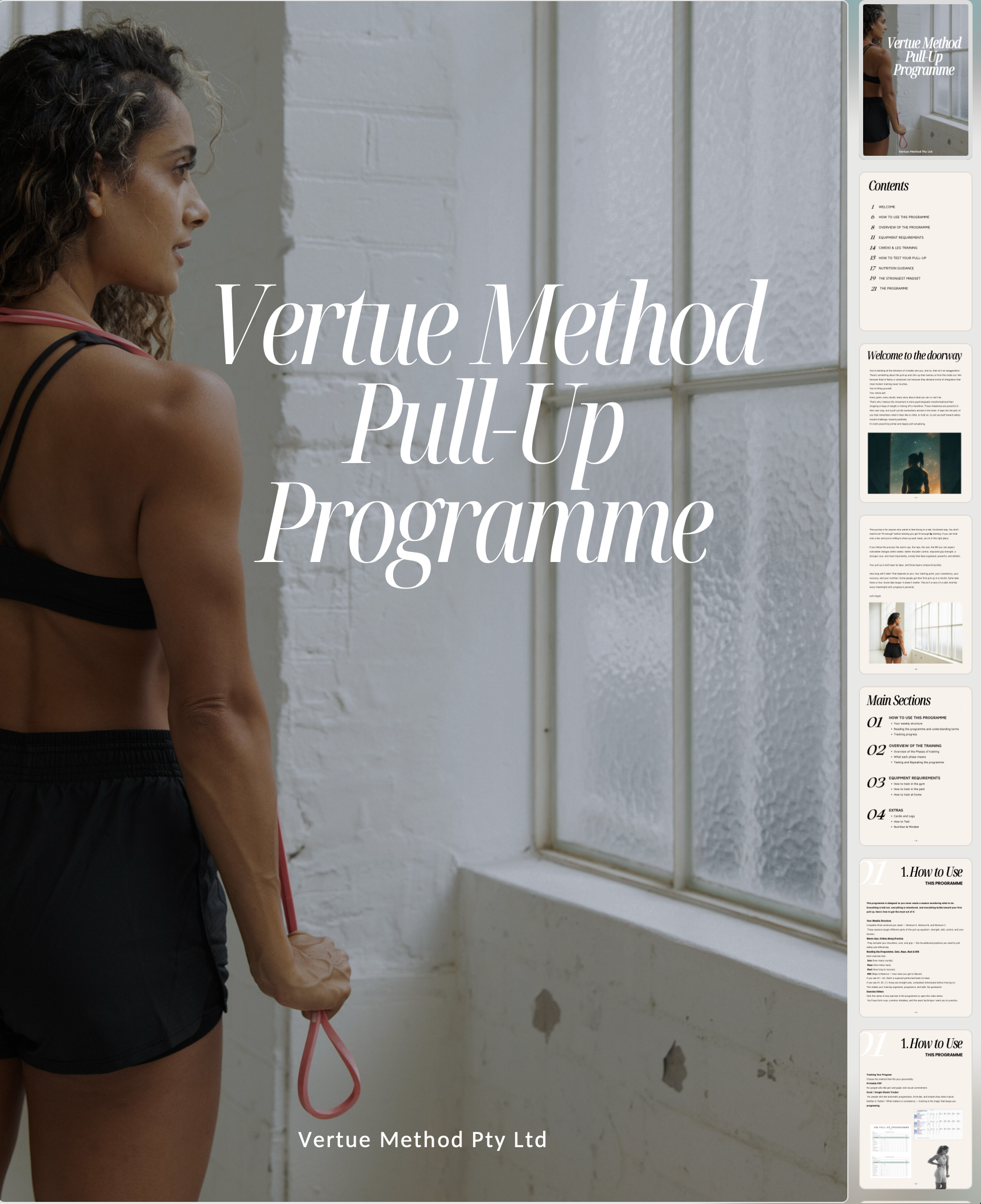 Build the strength, skill, and confidence required for your first pull-up (or your first clean one). This programme develops the real engines of the movement — lats, core, grip, and scapular control — while training your nervous system to move with precision, power, and ease.